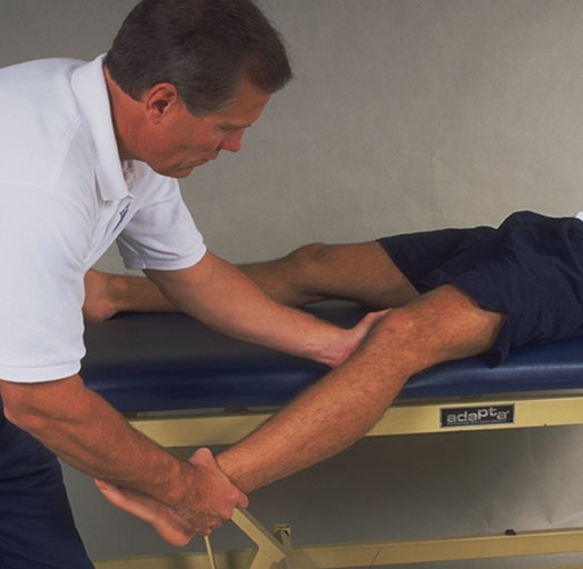 This test is done in 20 degrees of flexion to relax the iliotibial band and the structures of the posterior capsule. In full extension a varus stress may elicit pain from the iliotibial band, it's bursa or the structures of the posterior capsule.